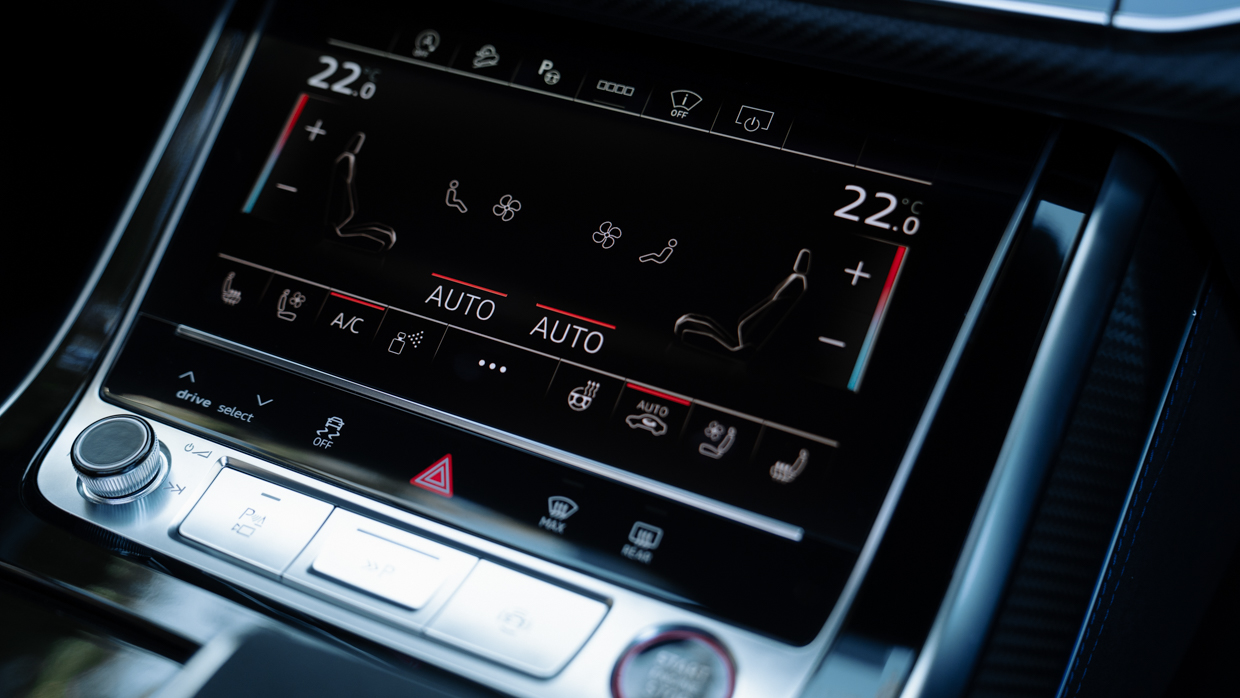 C'est chargé de caractéristiques. Les écrans à double suppression de 10,1 pouces et de 8,6 pouces de «contrôle» restent, avec des commentaires acoustiques et haptiques, bien que le format MMI Media a l'air de cinq ans à cette époque de technologie en cabine rapide.
