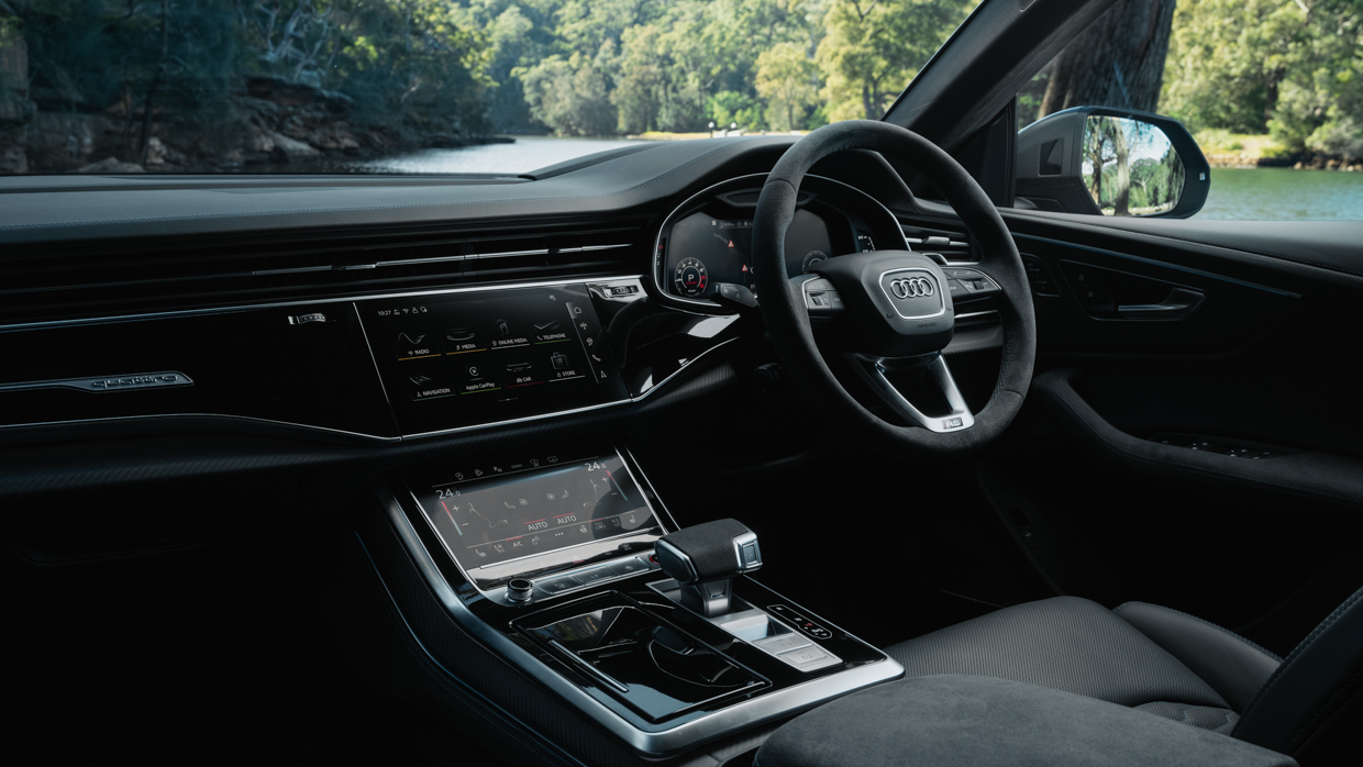 À l'intérieur, il y a un choix de cinq «thèmes» de conception révisés, principalement un choix de couleur de surbrillance pour les sièges en cuir Valcona cousus en diamant luxuriant. Un décor de garniture est révisé et la version de performance de RS Q8 obtient un contenu de cockpit virtuel sur mesure.