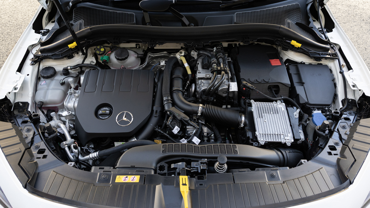 Exclusivement traction avantle système de plug-in GLA combine un 120 kW Moteur à essence turbo de 1,3 litre avec un seul 80 kW moteur électrique, qui est intégré dans le huit vitesses double embrayage automatique.