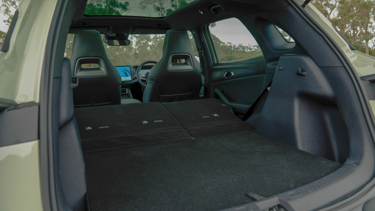 L’espace est impressionnant – à la fois la banquette arrière relativement spacieuse, qui offre beaucoup d’espace pour les jambes pour la classe, et une hauteur sous plafond de six pieds – mais aussi un espace de rangement abondant à l’avant et un espace de coffre raisonnable de 380 litres. Pas de roue de secours d’aucune sorte cependant.
