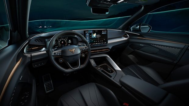 Les intérieurs seront proposés dans une gamme de qualités et de matériaux, notamment des sièges baquets sportifs pour les versions les plus puissantes et un tissu d'ameublement que Cupra appelle Seaqual, qui utilise des matériaux 100 % recyclés et du daim synthétique Dynamic, qui est recyclé à au moins 73 %.