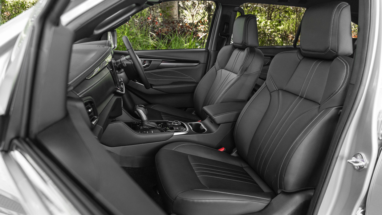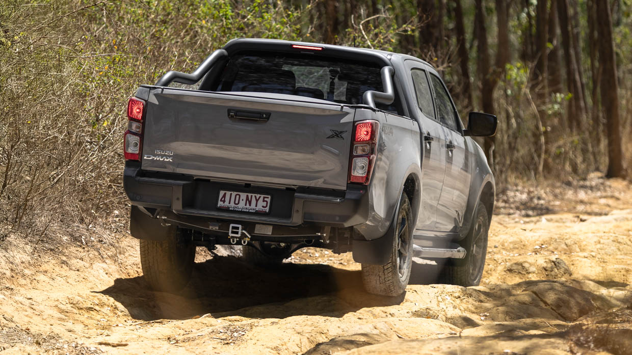Le X-Rider que nous avons testé ne comporte qu’une suspension arrière standard à trois lames (les modèles à châssis-cabine sont équipés d’une suspension robuste à trois lames mieux adaptée aux camions de travail transportant régulièrement des charges), de sorte qu’elle n’est jamais trop tremblante. Mais montez à bord du MU-X sept places à ressorts hélicoïdaux et la vie est bien plus confortable sur route comme hors route.