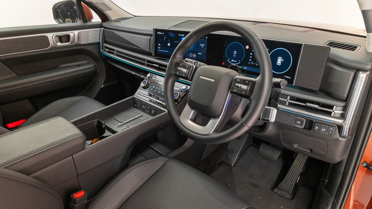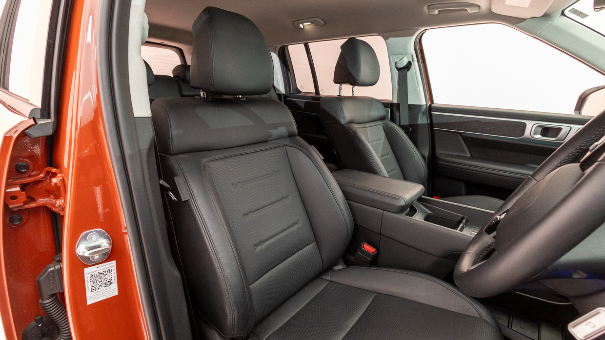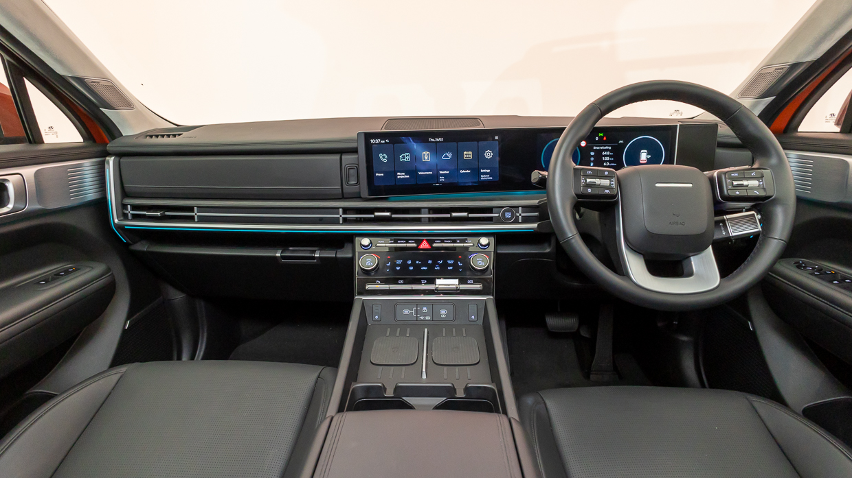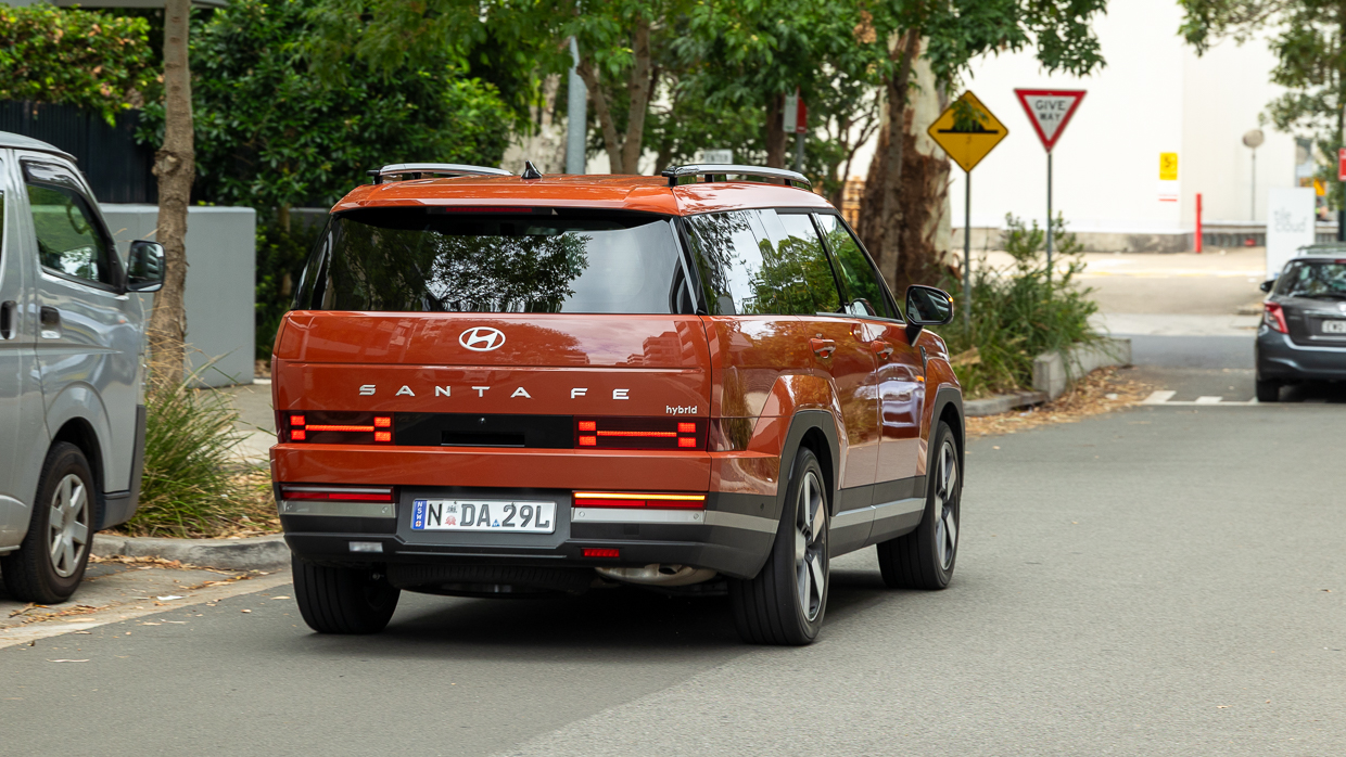 Notre modèle d’essai présente l’entreprise en orange terre cuite sans frais – certaines couleurs nécessitent un supplément de 750 $ – et sans doute les alliages les plus beaux de la gamme Santa Fe. L’intérieur standard Obsidian Black peut être « élevé » vers un thème clair Supersonic Grey pour 250 $ supplémentaires.