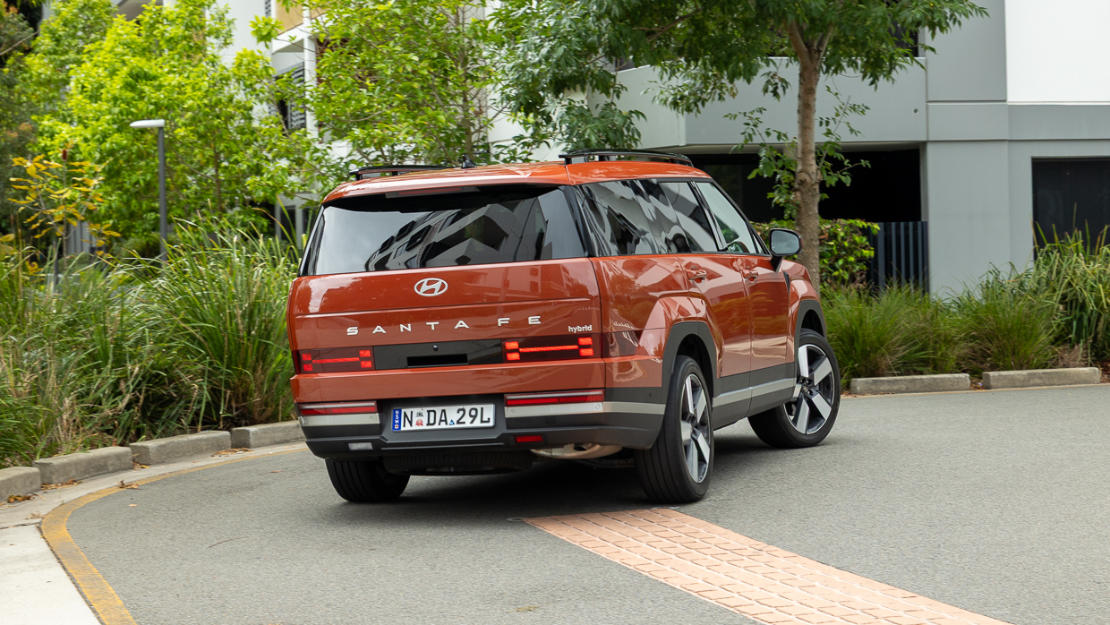 Chargé de quatre personnes avec leurs proches et leurs bagages, le Santa Fe s’installe bien dans un état ferme et confiant qui renvoie une belle conformité sur toutes sortes de bosses et de bosses de la route. Mais poussez l’amitié et le GVM (2680 kg) avec sept adultes à bord et il peut s’écraser sur ses butées arrière.