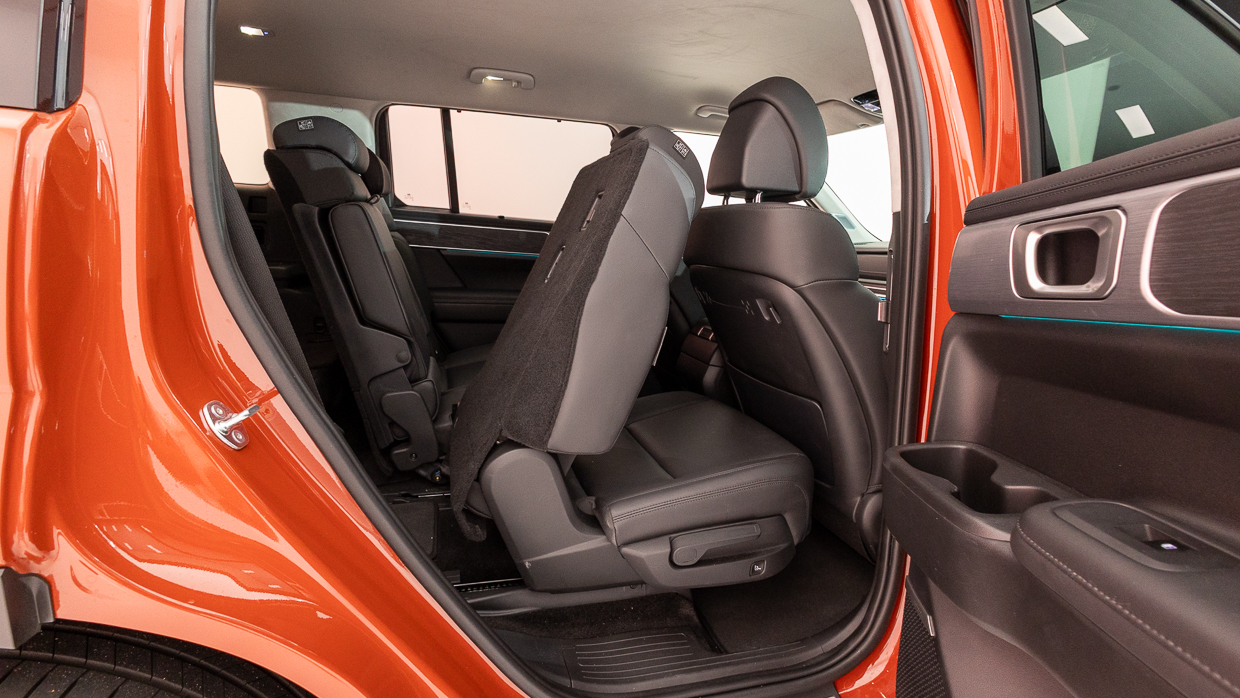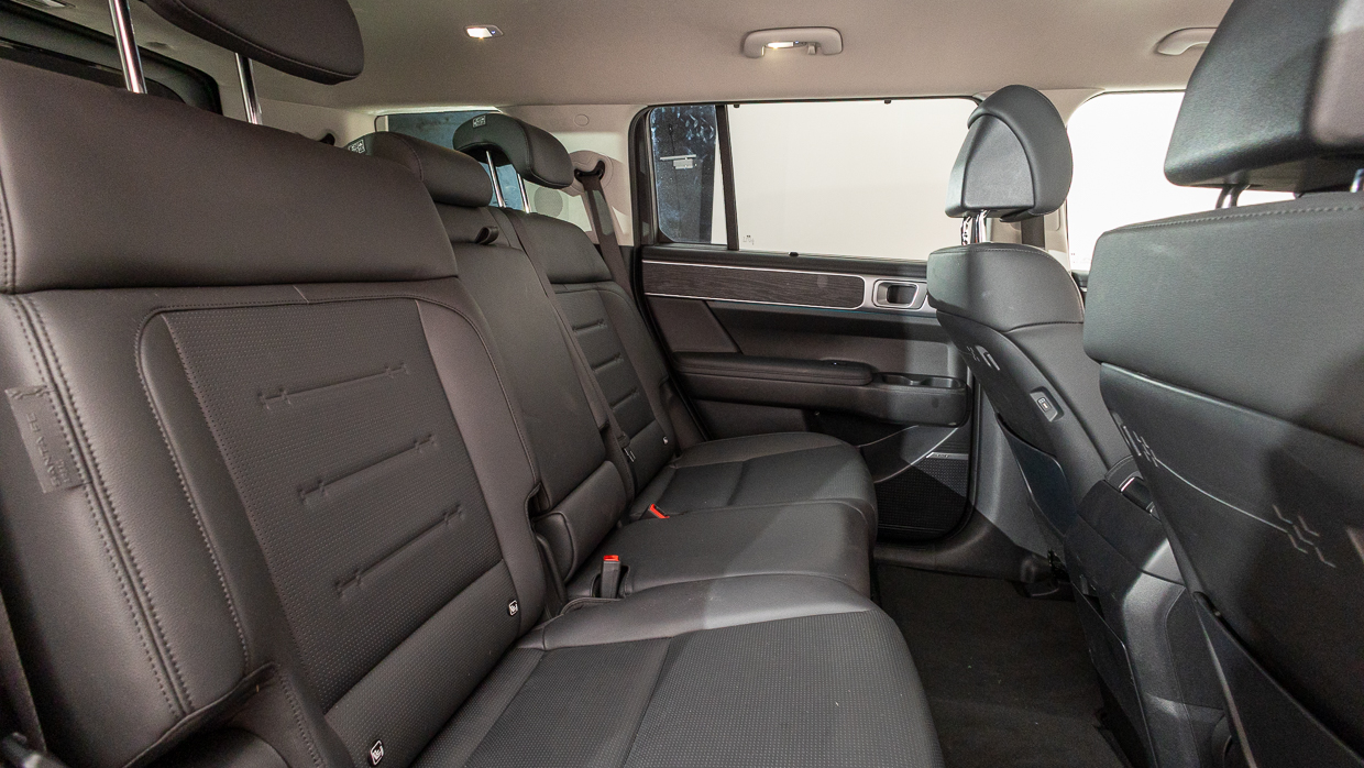 Le réglage bidirectionnel de l’inclinaison et du coulissement est pratique pour maximiser l’espace de la deuxième rangée en tant que cinq places ou pour équilibrer l’espace pour les genoux disponible entre la deuxième et la troisième rangée avec des occupants dans toutes les positions assises du Santa Fe. Il s’agit d’une véritable affaire de sept adultes, à condition, comme mentionné, de ne pas surcharger le GVM – ce qui est étonnamment facile à faire.