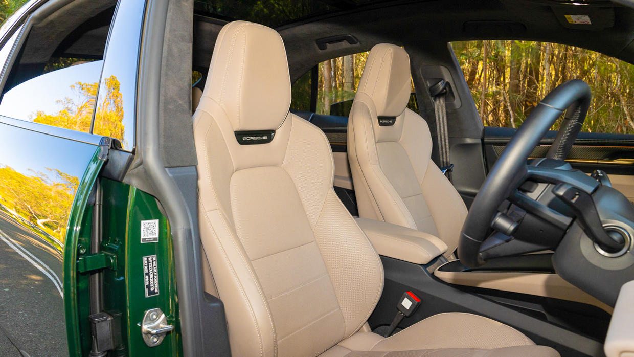 Les sièges sport adaptatifs standard du Turbo sont formidables, avec un réglage individuel du renforcement des cuisses et du torse, particulièrement utile pour choisir entre une position de conduite plus détendue ou une sensation plus racée et serrée. Le réglage généreux de la hauteur signifie également que les conducteurs peuvent choisir de s’asseoir en hauteur sur le Cayenne ou sur le Cayman en position basse.