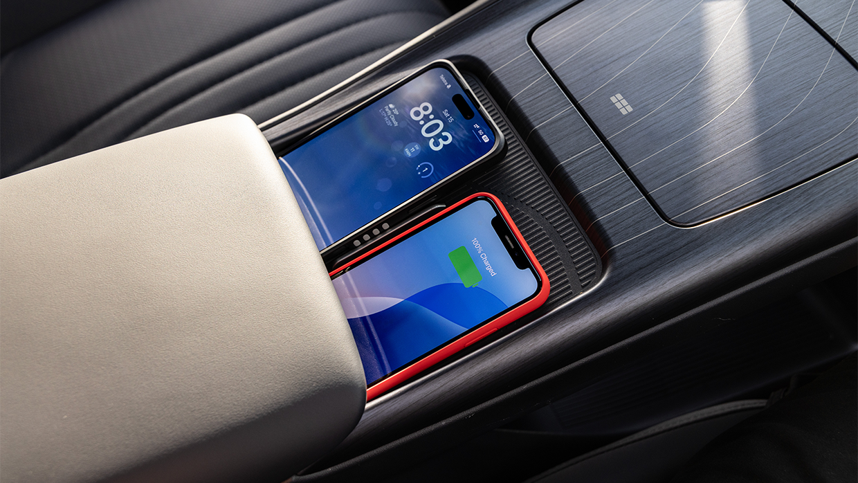 Ailleurs, l'EX5 Inspire continue d'être un sac mixte. Le cadran rotatif de la console est configurable à différentes fonctionnalités – très intelligents – mais l'écran du conducteur et le HUD affichent tous deux que la surveillance de proximité du véhicule de type Tesla qui aurait dû rester dans le bac d'idées inutiles. Le grand rangement sous-console cubby est doublé de plastique, où Oddment a tendance à claquer.