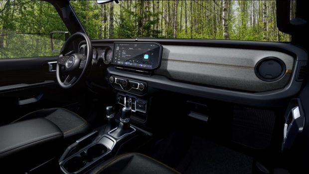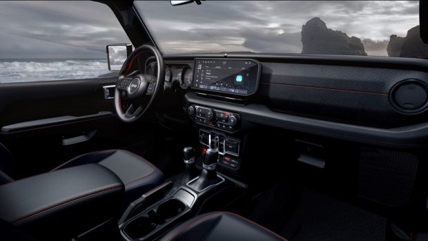 La technologie est également renforcée pour le nouveau Wrangler avec un système multimédia à écran tactile Uconnect 5 de 12,3 pouces, désormais standard sur toute la gamme. Jeep affirme que la reconnaissance vocale mains libres est désormais standard sur tous les modèles, ainsi que Apple CarPlay et Android Auto sans fil.