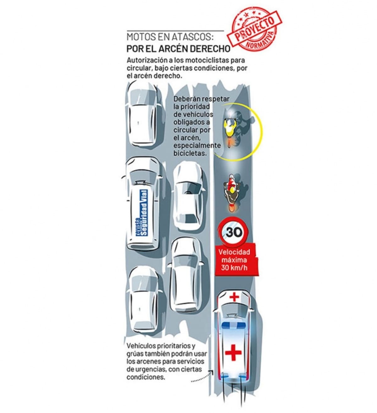 Avec la mise à jour du Code de la Route, les motards espagnols pourront emprunter la bande d’arrêt d’urgence en cas de trafic dense. Cette mesure sera toutefois soumise à des règles précises :