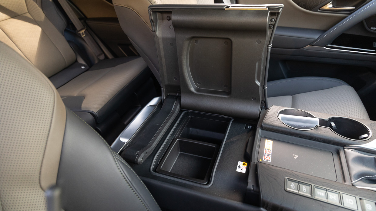 La console centrale très profonde et réfrigérée est un succès auprès de quiconque le remarque, tout comme la possibilité d'ouvrir cette console du côté conducteur ou passager. Il a presque l'air assez grand pour qu'une bouteille de vin ou de champagne se lève.