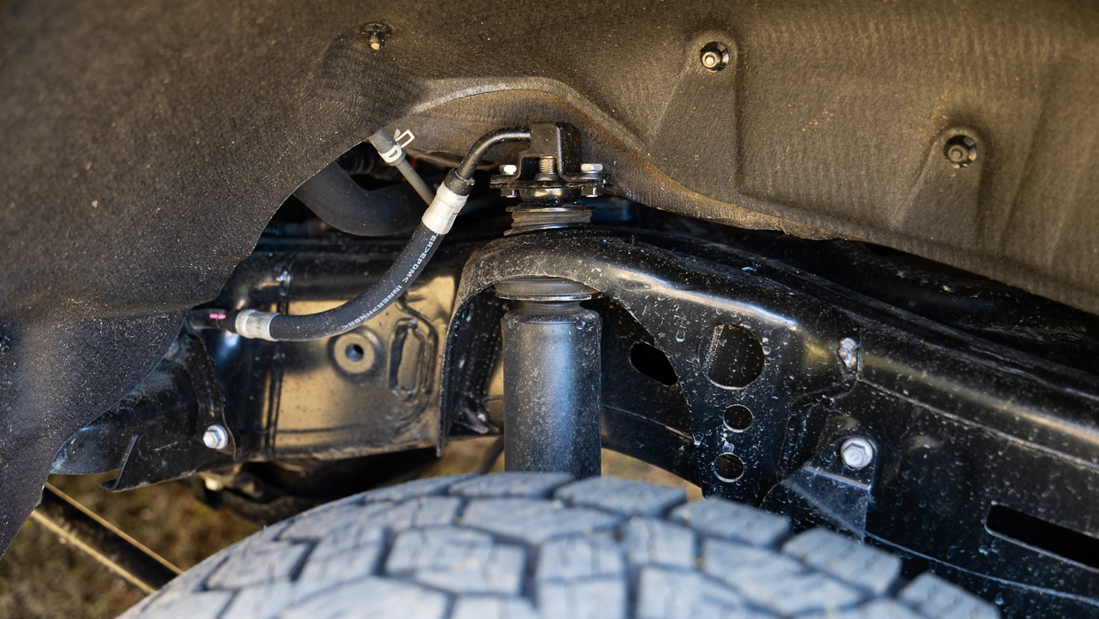 En direction du tout-terrain, il est trop facile de faire augmenter les choses d'un ou deux crans. Il existe également des modes de hauteur prédéfinis, qui peuvent être activés via le cadran rotatif MTS. Sélectionnez le mode Rock par exemple, et le paramètre le plus élevé sera automatiquement engagé. C'est presque de la triche.