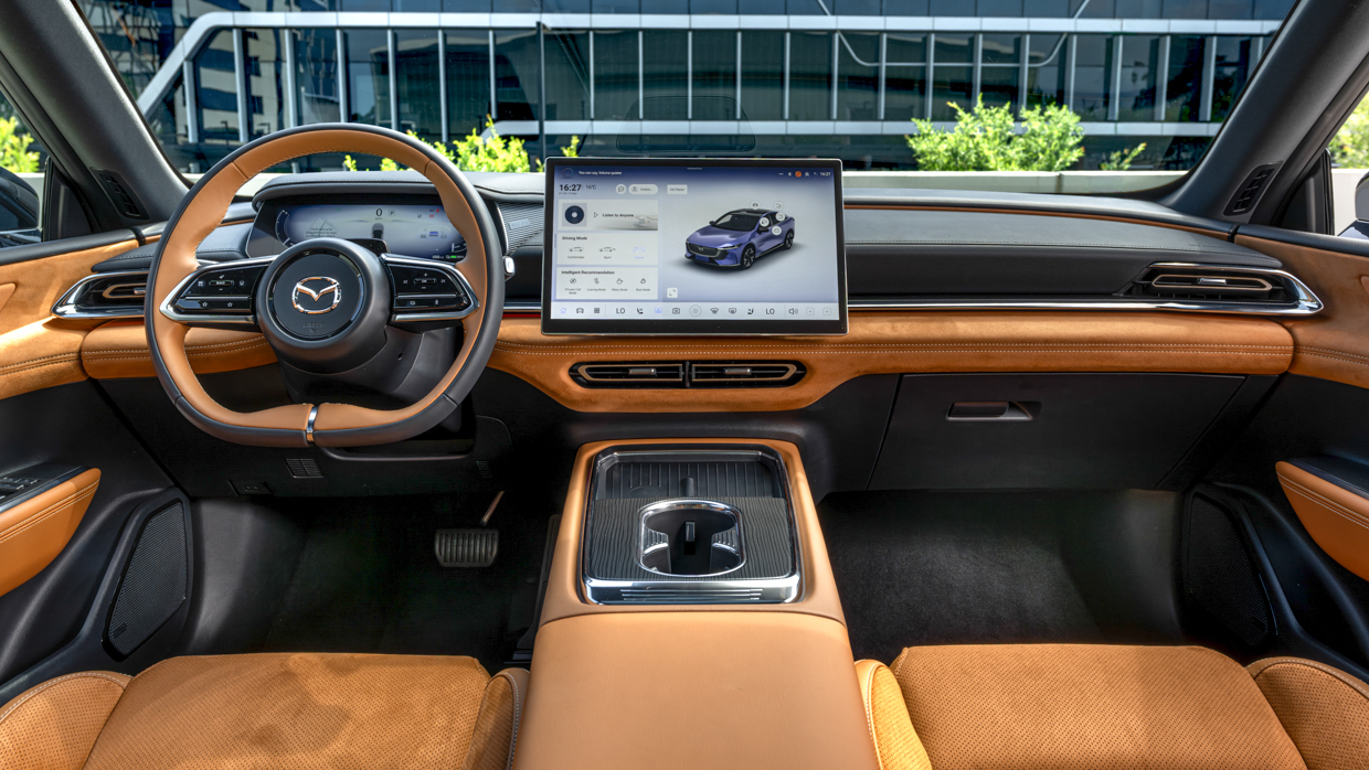 Mazda Australie n’a pas confirmé la gamme de variantes de la 6e pour son lancement au deuxième trimestre 2026, mais il s’agira d’une petite gamme haut de gamme d’au moins deux variantes (la supérieure s’appelle probablement Atenza, avec les mêmes spécifications que la voiture présentée ici), à partir de moins de 55 000 $ avant les coûts sur route.