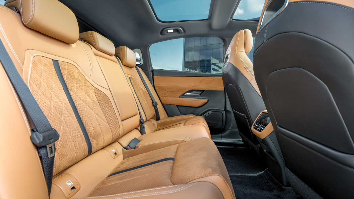 Enfin, direction la cabine. Le traitement intérieur beige de notre essai 6e avec revêtement en Alcantara perforé était agréablement luxueux, combiné à un support de siège impressionnant, une position de conduite très Mazda, une excellente vision vers l’avant et un « bruit sourd » solide et satisfaisant lors de la fermeture des portes sans cadre.