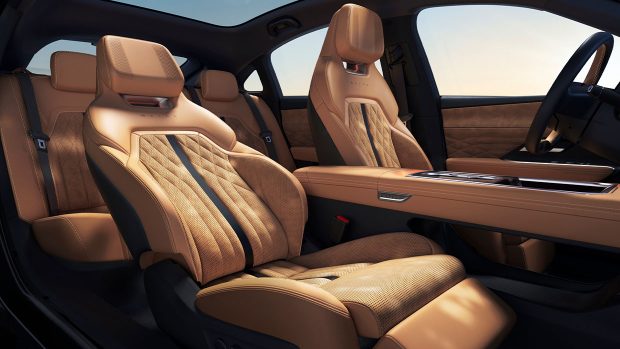 Le 6E propose des intérieurs noirs ou tan, avec des fonctionnalités comprenant un Écran tactile de 14,6 pouces, Système audio Sony à 14 haut-parleurs, affichage tête haute de la réalité augmentée de 50 pouces et sièges avant zéro-gravité.