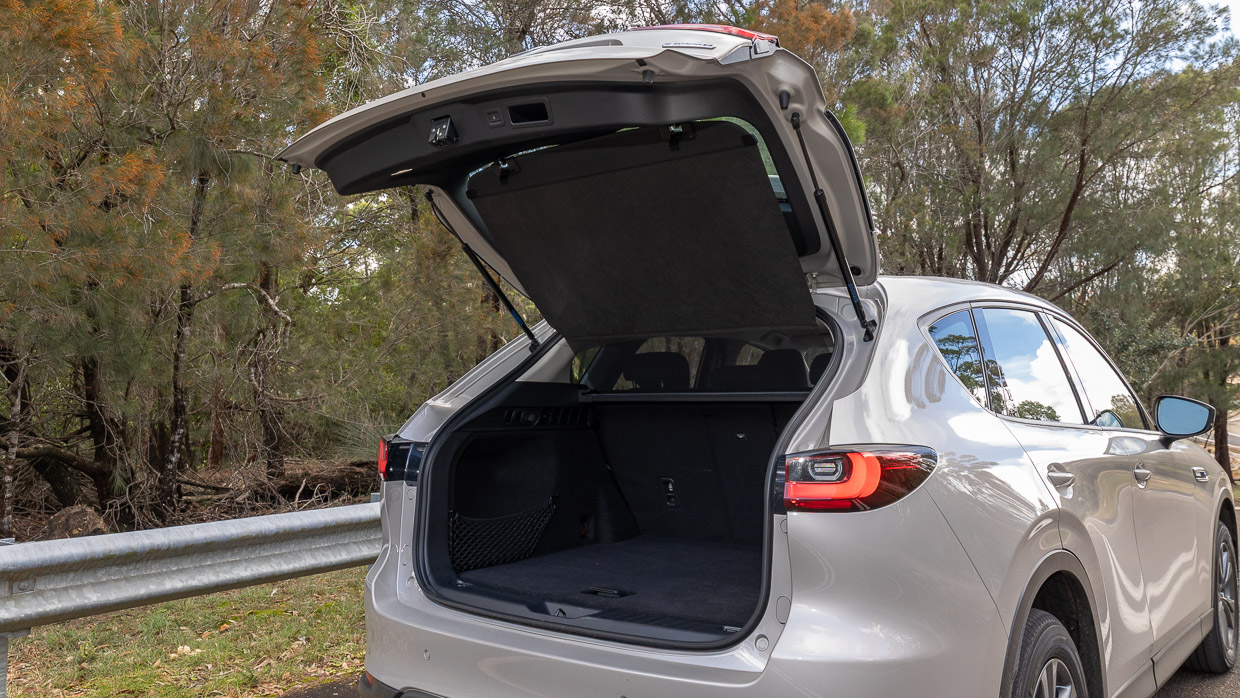Le dossier divisé 40/20/40 du CX-60 Pure se replie presque à plat avec des niveaux de traction dans la botte, où l’espace est raisonnable à 477 litres. Les pratiques de démarrage comprennent une prise de 12 volts, un cubby filet à gauche et un pneu de secours temporaire.