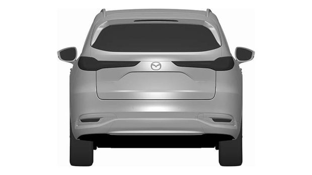 Contrairement au CX-60, qui possède une lunette arrière plongeante vers le haut au niveau du montant D, le CX-80 possède une serre plus grande qui ne s'élève pas. L'arrière semble également comporter des feux arrière légèrement plus fins que ceux du CX-60, similaires aux plus grands SUV susmentionnés, ainsi qu'un pare-chocs arrière légèrement différencié.