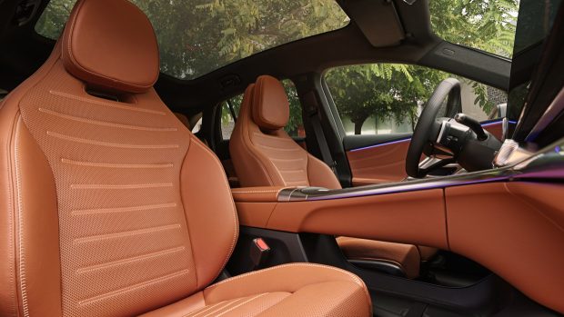 Un énorme toit ouvrant panoramique est un équipement standard, mais comme dans l'IX3, il ne s'ouvre pas. Facultativement, le toit du GLC peut être mis à niveau avec une technologie de contrôle du ciel qui permet une gradation active et est également rétro-éclairé la nuit avec un 162 étoiles Mercedes plutôt insuffisantes.
