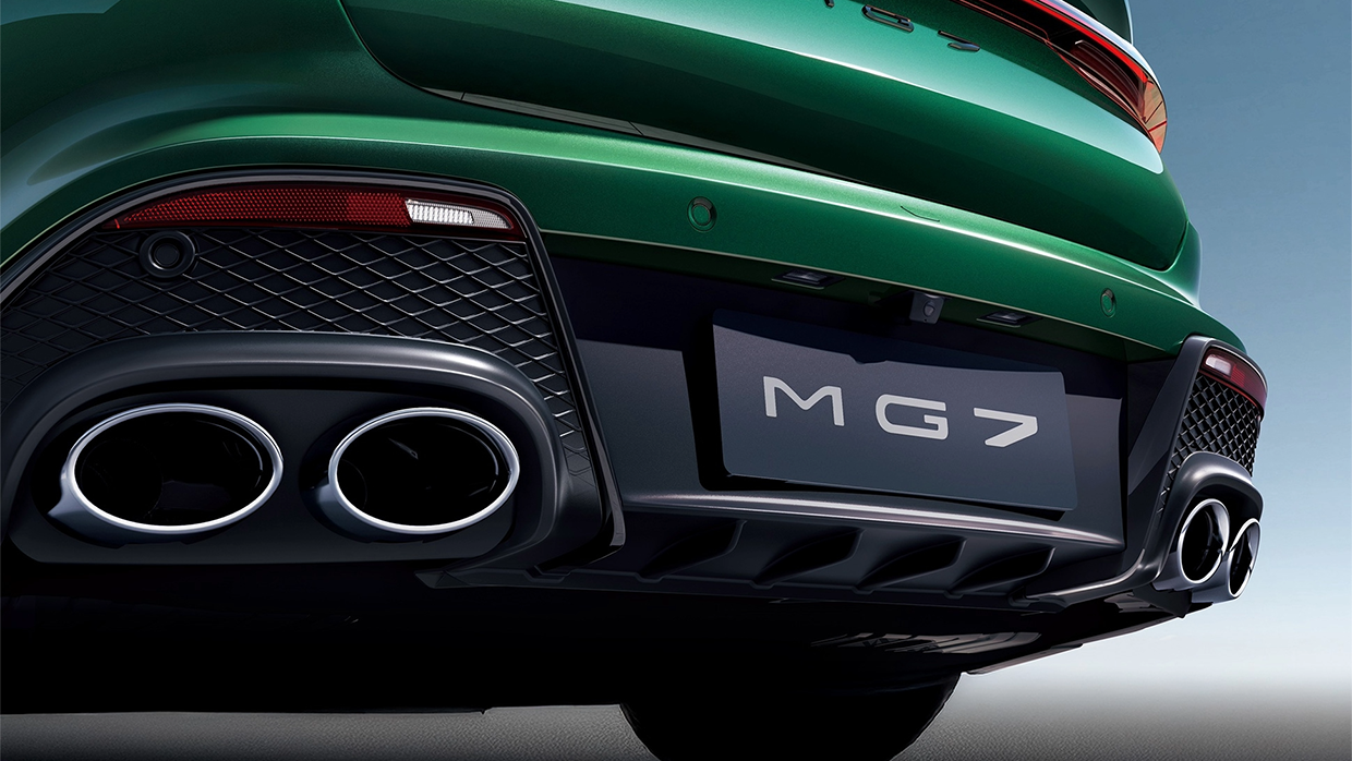 Des étriers peints en rouge, des embouts d’échappement quadruples, un capot cannelé et un subtil aileron arrière électrique réglable en trois directions contribuent à renforcer la nature sportive de la MG7.