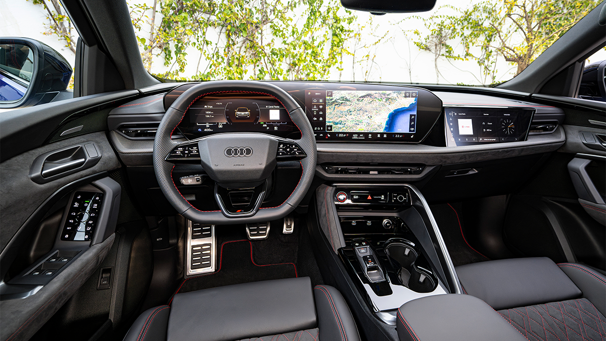 À l'intérieur, vous verrez un revêtement en cuir nommé en cuir complété par le relâchement S, les pédales en acier inoxydable et un volant à toit plat et en bas multifonction, pour n'en nommer que quelques-uns.