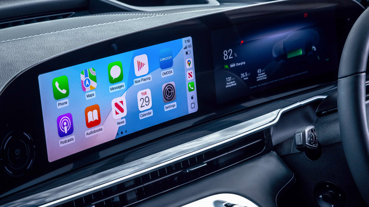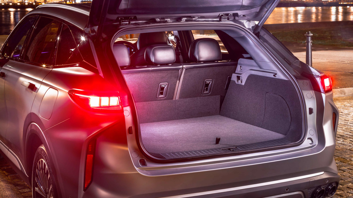 Il y a un éclairage de flaque d'eau, un réglage de la direction électrique, un parc d'auto, une caméra à 360 degrés, un écran tête haute, un écran de base de 12,3 pouces, un chargeur sans fil 50 W, une auto Apple sans fil sans fil / Android Auto, une dashcam intégrée, un toit ouvrant panoramique de la peinture ou un gris de la peinture mate (gris de l'ombre) parmi les cartes de bottes spacieuses.