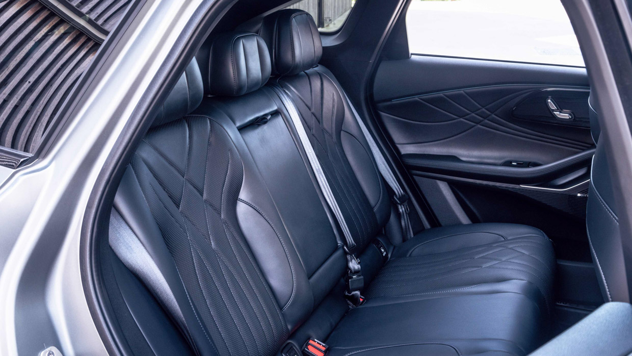 Sinon, la forme du siège avant est raisonnable et il y a un rembourrage à face en cuir, une ventilation et un chauffage tout autour (y compris le volant et les positions arrière extérieures). Et le banc arrière est confortable pour deux, avec beaucoup d'espace pour les jambes et les orteils, bien que les commandes de siège arrière montées sur la porte ne soient que des guirlandes – la base ne fait rien, le dossier ne se déplace que légèrement.