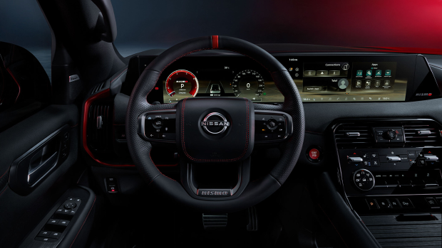 Les ajouts sur mesure à la patrouille nismo comprennent une suspension à empattement électronique au nismo, des roues alliages forgées de 22 pouces, une garniture aérodynamique supplémentaire et un design d'intérieur sur le thème rouge et noir inspiré du sport automobile avec un matelting en nid d'abeille modélisé au large de la calandre extérieure.