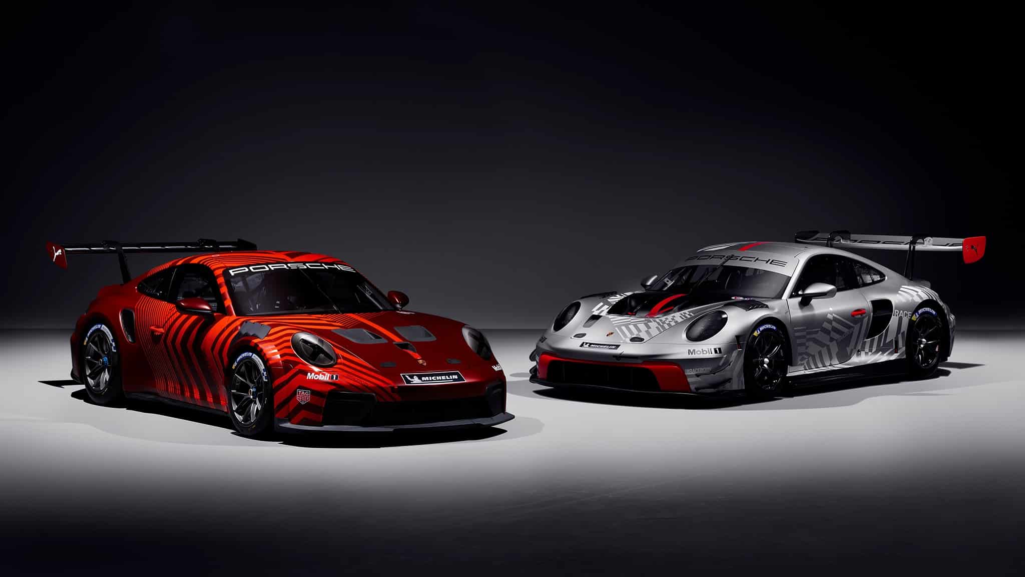 Les voitures de course à la 911 GT3 R et 911 de Porsche, les voitures de course à la 911, faisant ses débuts pour la saison 2026, présentent une manipulation améliorée, une aérodynamique et une conduite. Le GT3 R comprend un refroidissement et un équilibre améliorés, tandis que la tasse 911 a de meilleurs freins et contrôles. Les deux conservent des moteurs plats puissants.