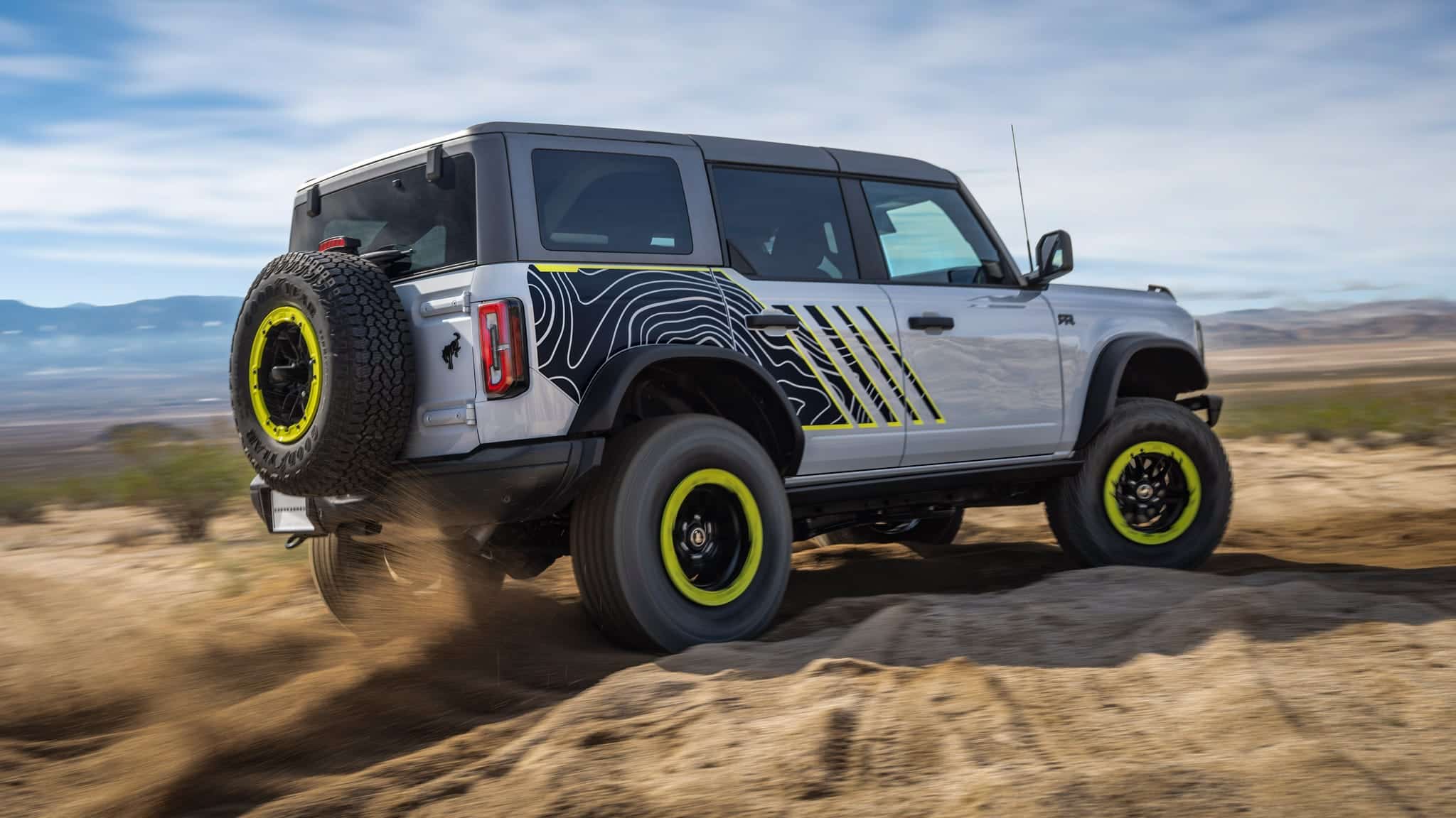 Quelques parties du RTR proviennent directement du Bronco Raptor, comme son ventilateur de refroidissement de 1 000 watts, qui aspire plus d’air sur le radiateur pour contrôler la température du groupe motopropulseur pendant les longues et épuisantes journées dans le désert. Et la crémaillère de direction et les tirants plus robustes du Raptor aident le RTR à éliminer les charges plus élevées et les coups plus durs qui vont de pair avec l’exploration des rochers et la course à grande vitesse dans le désert.