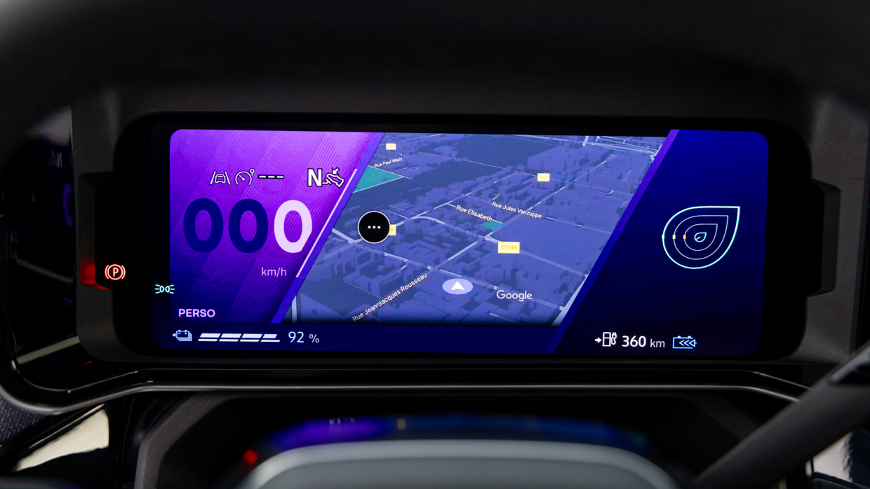 Les palettes de changement de vitesse sur le volant de Renault 4 basculent à travers Quatre niveaux de freinage régénératifsLe plus fort servant la conduite en une pédale.