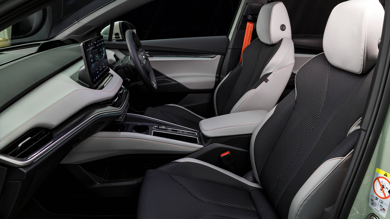 À l'intérieur, l'Elroq ne tombe pas en deçà des touches «tout simplement intelligentes» tout autour de ce nouveau joyau de Timiano Green. Depuis la fourniture de porte-gobelets, les 48 litres supplémentaires de stockage à travers la zone de la console centrale et l'étagère de colis dans la botte ayant deux options de niveau pour maximiser l'espace de chargement.