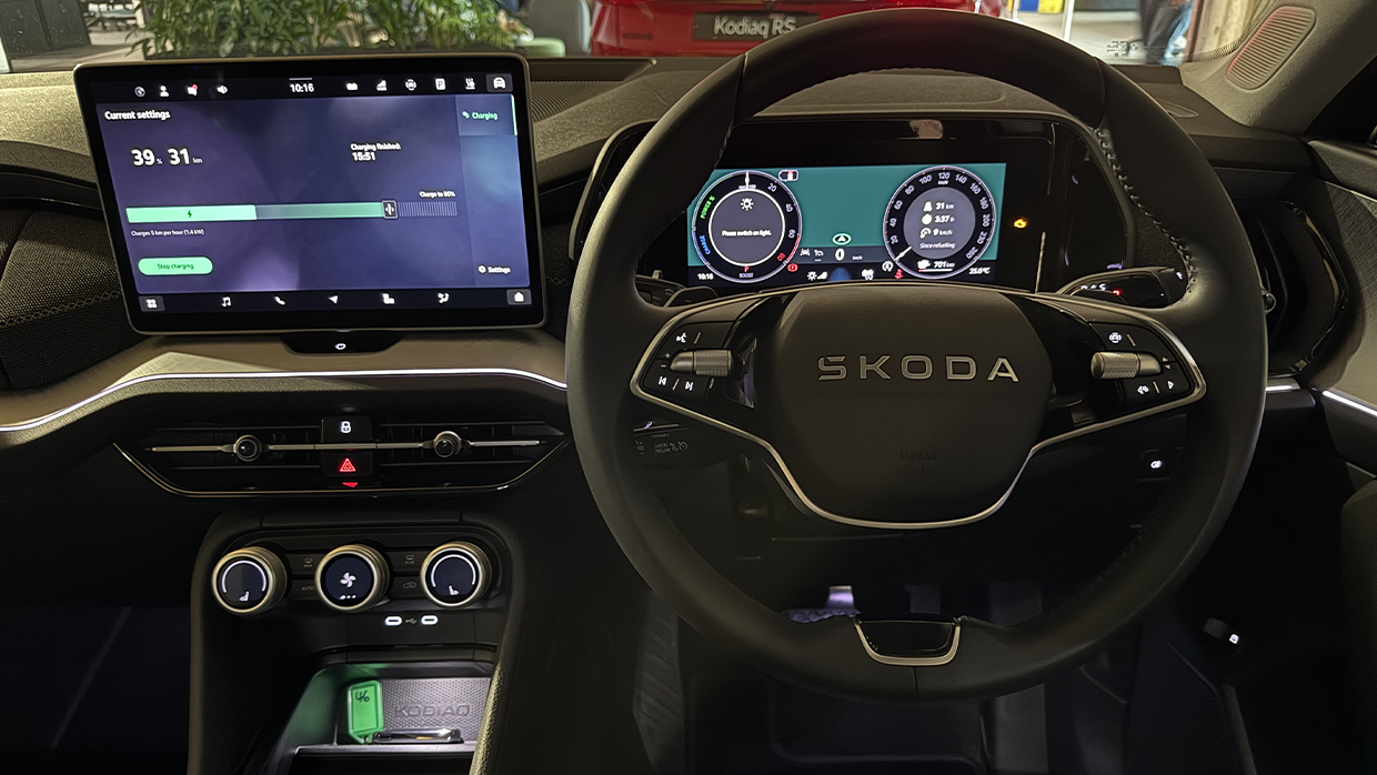 L’équipement du Skoda Kodiaq Select PHEV reflétera son homologue Select essence uniquement (visible ici), à l’exclusion d’un système amélioré à neuf airbags, de nouveaux modes de conduite PHEV, qui incluent le « Mode E » (EV uniquement) et « Hybride », et le freinage par récupération réglable.