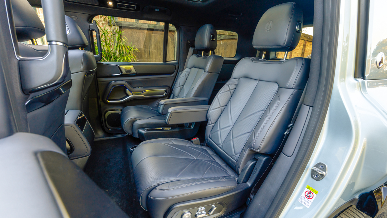 Même après des heures de conduite sur des routes accidentées, nous n’avons détecté aucun grincement ou cliquetis provenant de l’habitacle, et tout semble incroyablement bien assemblé – à l’exception des accoudoirs minuscules des sièges capitaines de la deuxième rangée.