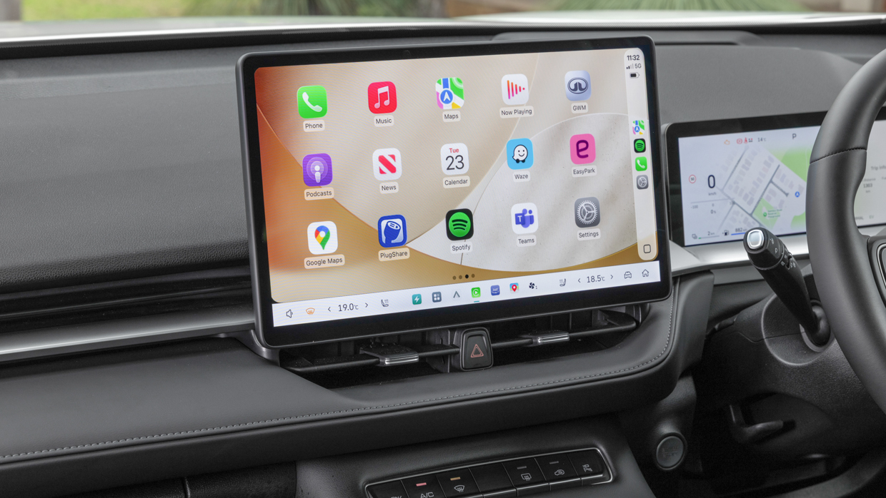 Bizarrement, les écrans que vous obtenez diffèrent selon que vous optez pour l’essence/HEV ou pour le nouveau PHEV – ce dernier bénéficiant d’une mise à niveau très considérable sous la forme du nouveau système d’infodivertissement Coffee OS 3 de GWM (avec des ajustements spécifiques à l’Australie).