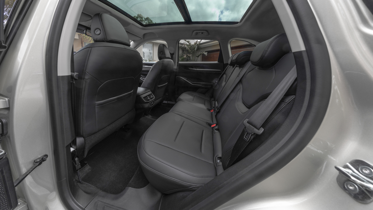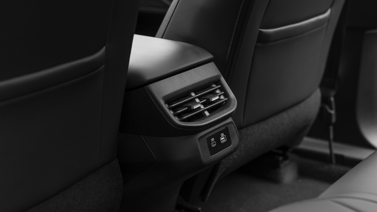 La banquette arrière brille par son énorme espace pour les jambes et sa tête solide, ainsi que par ses bouches d’aération standard sur toute la gamme – et la base du siège de la deuxième rangée offre plus de soutien que celle de l’avant.