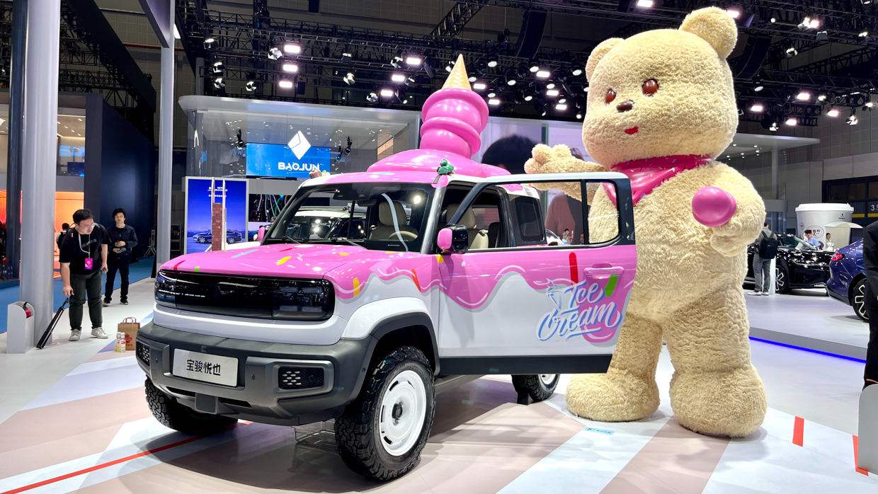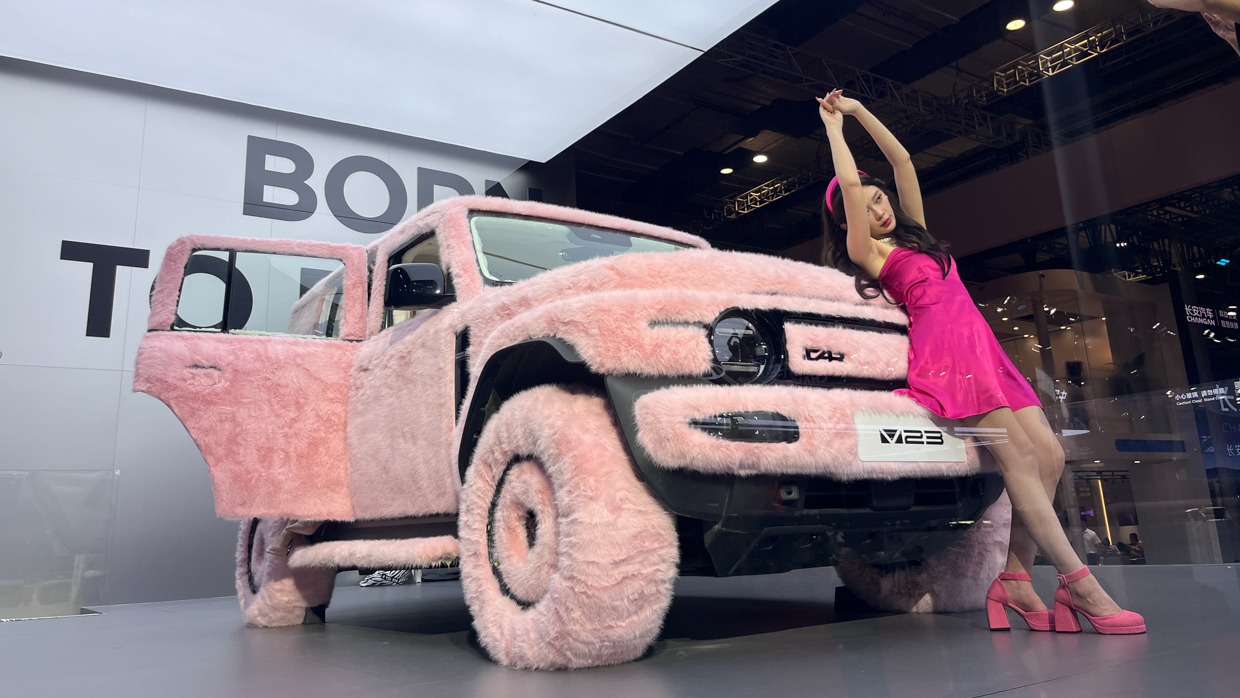 Mignon et style de vie, la marque chinoise les a montrés avec des pneus noutons, une échelle de toit et un équipement de camping. Plus troublant, il y en avait un rose vêtu comme une glace avec un ours en peluche de trois mètres de haut.