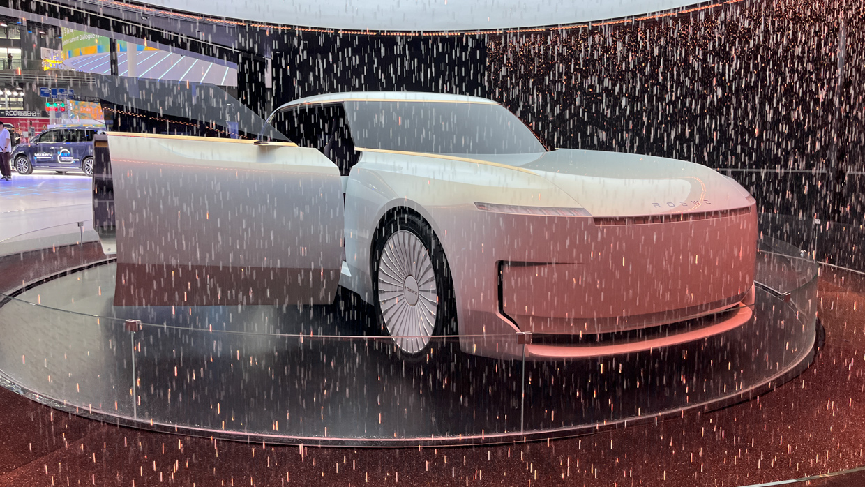 Le seul stand à avoir des précipitations de travail autour de sa voiture, montrant des rivaux doit travailler plus dur. C'est le Roewe Concept Car « Pearl of China », une berline EV hyper-luxe écrite par l'ancien chef du design de Rolls Royce.