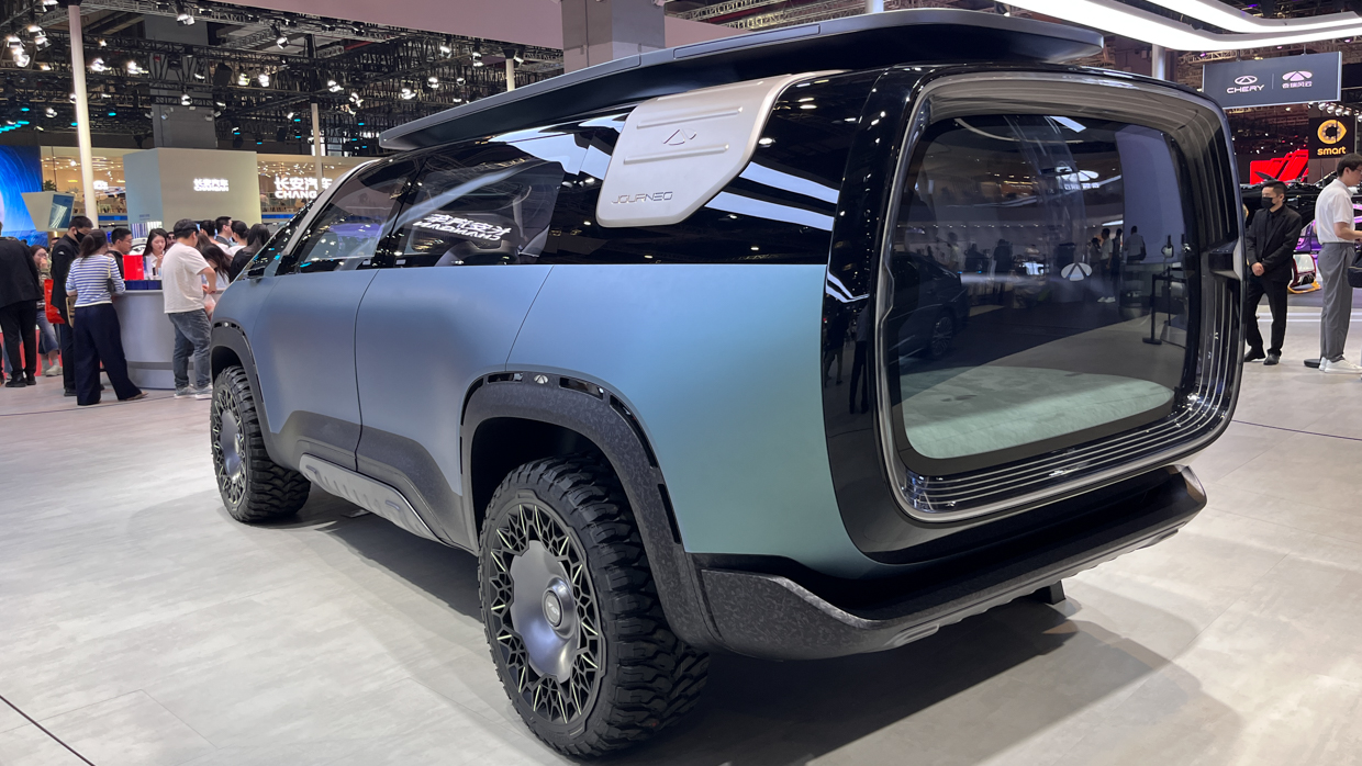 Qui ne veut pas d'une camionnette d'aventure? Chery Parcourir Le concept a un arrière comme une cabine écologique, son hayon ovale en verre géant permettant aux occupants de coucher profiter de la vue depuis un cocon funky.